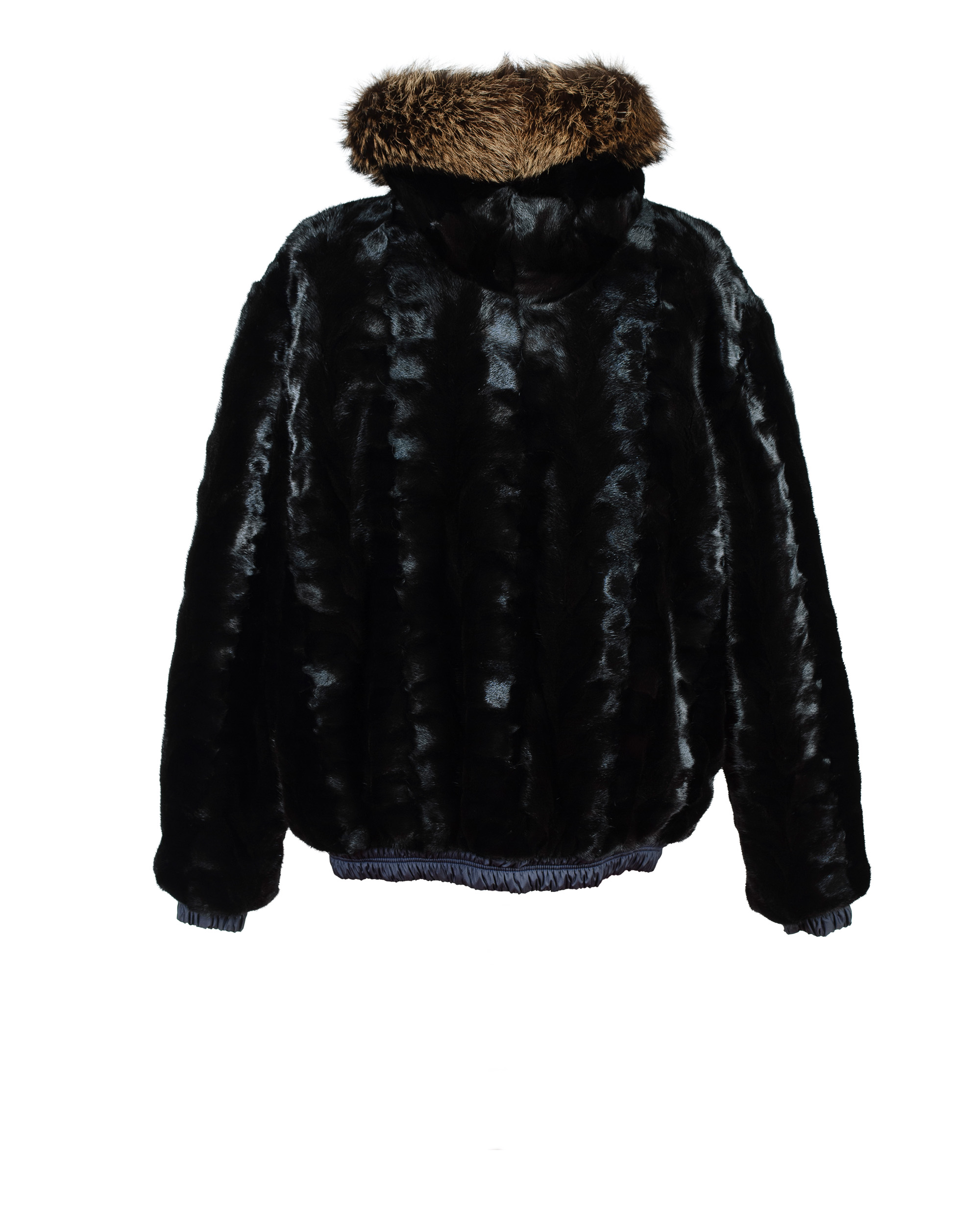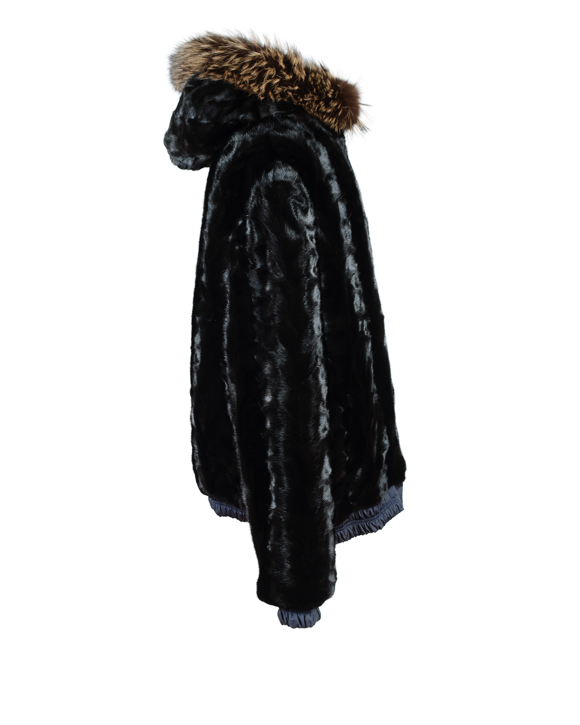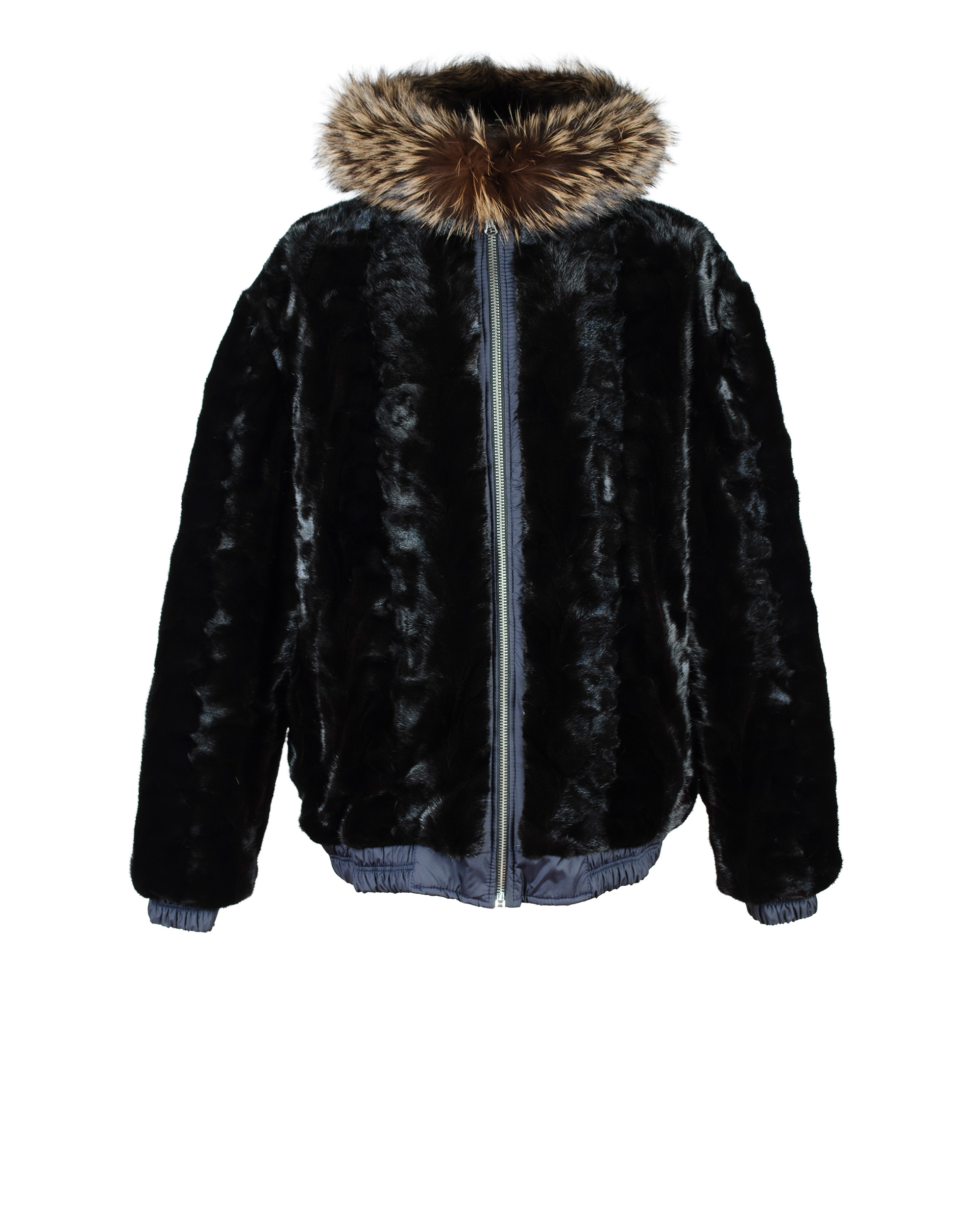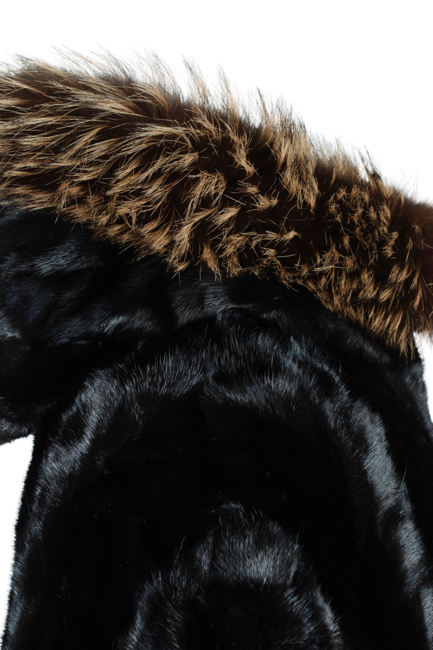 Navy puffer exterior with black mink interior and fox fur hood.